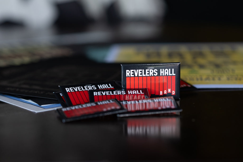 Show of your love of the Revelers Hall Band on your jacket, backpack or tote with this red and black pin.